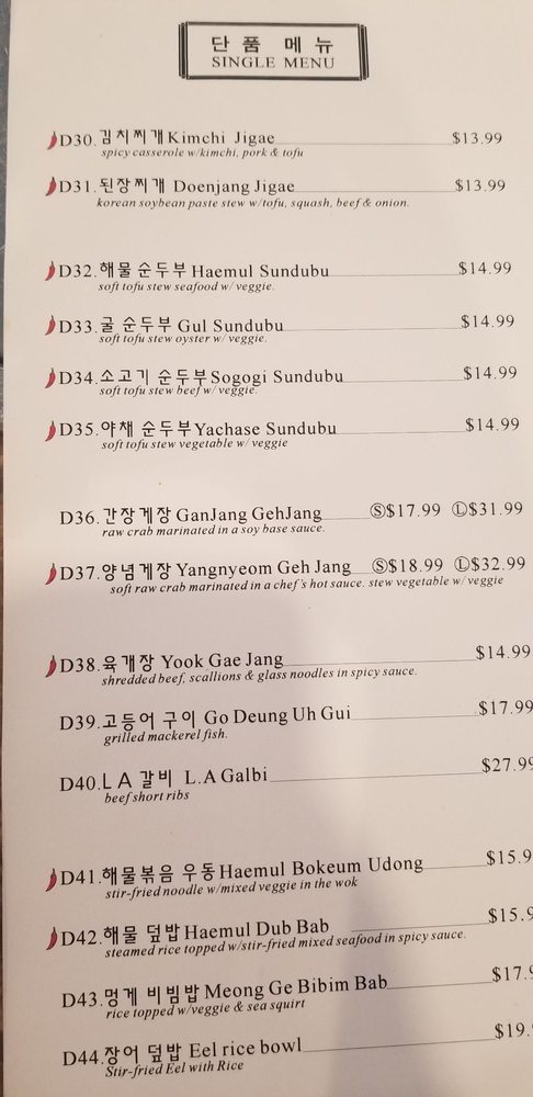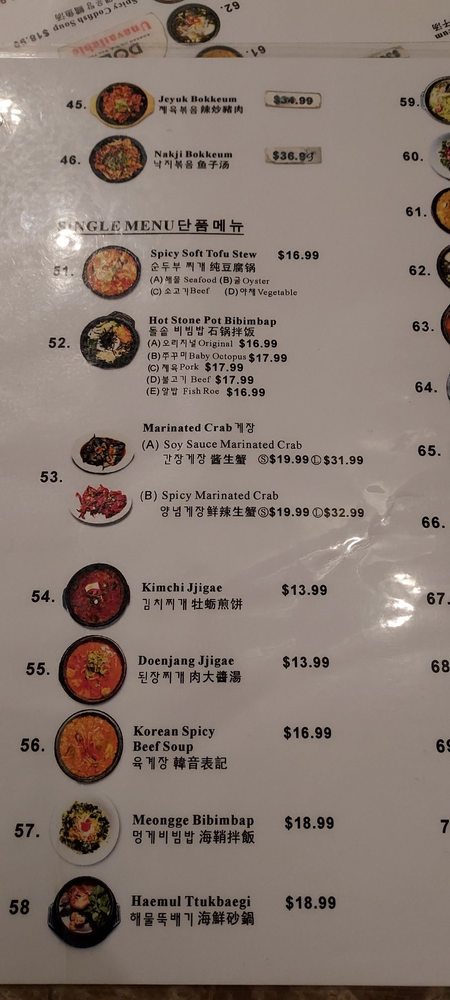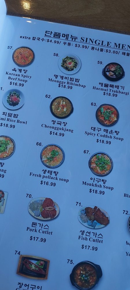 - Highlights: Their menu features tantalizing options such as Korean spicy soft tofu stew and haemul tukbaegi, a spicy seafood stew served in a stone pot.